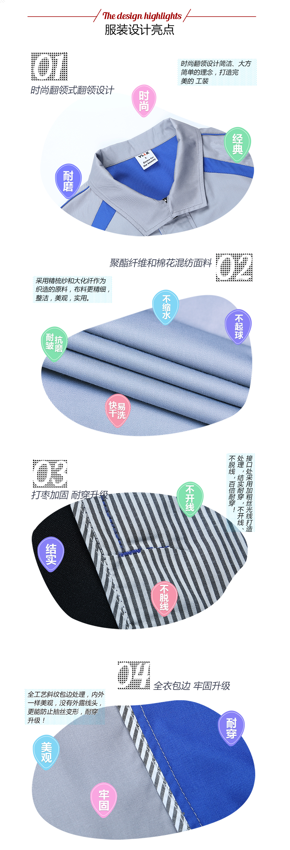 相關夏季細節(jié)拼接撞色滌棉細紋短袖工作服FY635推薦