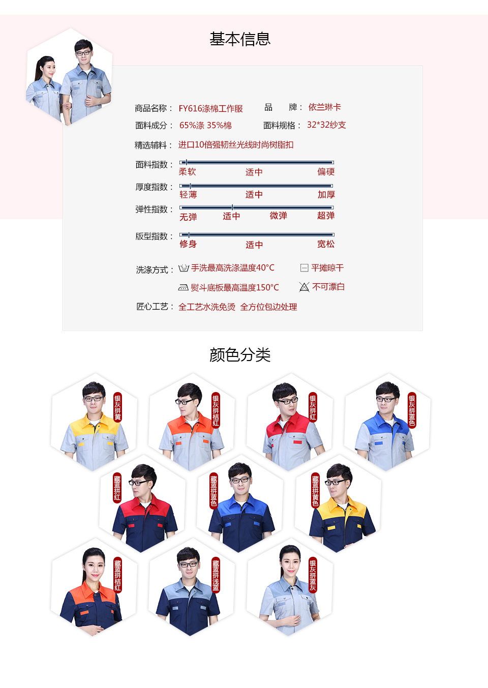 相關(guān)時尚撞色拼接夏季滌棉細(xì)斜短袖工作服FY616推薦